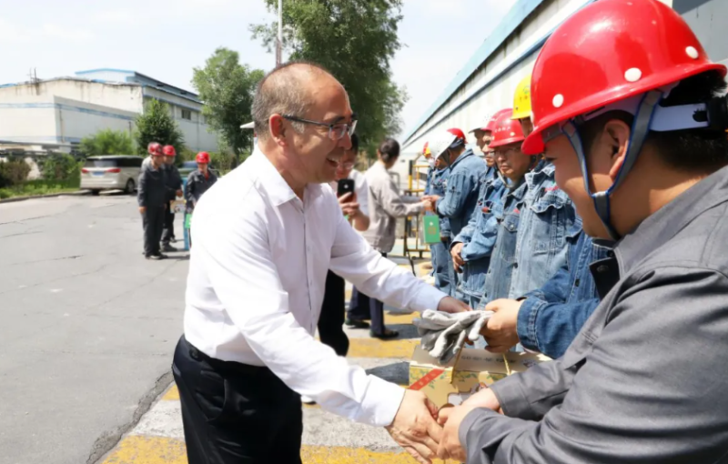 慰問現場,吳有禎與生產一線職工親切交流,詳細詢問大家的工作環(huán)境、勞動保護措施及防暑降溫落實情況,對職工們在高溫天氣下堅守崗位、辛勤付出的精神表示衷心感謝。他指出,炎炎夏日里,廣大干部職工搶抓生產黃金期,不懼酷暑,揮灑汗水,用實干實績?yōu)楝F代化新青海建設作出了貢獻。隨后,吳有禎一行將防暑降溫用品送到職工手中,同時叮囑公司負責人,要高度重視高溫天氣下的安全生產和職工勞動保護工作,合理調整作業(yè)時間,改善勞動條件,確保職工身體健康和生產安全。