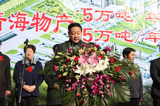 此次投產(chǎn)慶典儀式由青海省國資委副主任毛占彪主持,青海省委常委、副省長駱玉林、青海省人大副主任桑杰、青海省經(jīng)濟委員會主任、青海省政府國資委副主任吳海昆、西寧市政府副市長許國成、中共大通縣縣委書記吳海、大通縣人民政府縣長韓生才、青海省物產(chǎn)集團總公司總經(jīng)理、青海物產(chǎn)工業(yè)投資有限公司董事長王玉輝、青海省物產(chǎn)集團總公司黨委書記白家林以及省、市、縣有關部門的負責同志參加了投產(chǎn)慶典儀式。