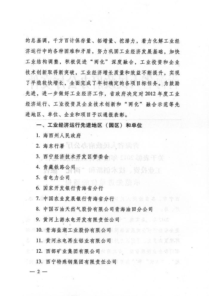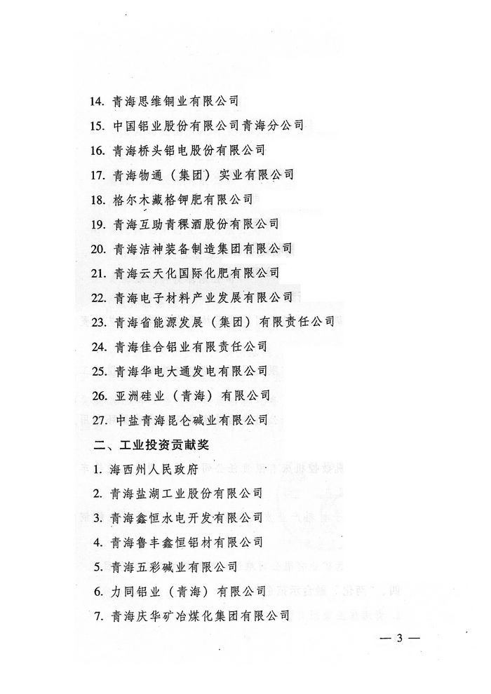 2012年,青海省物產(chǎn)集團(tuán)總公司在省委、省政府及省國資委的大力支持和領(lǐng)導(dǎo)下,集團(tuán)總公司按照全省工業(yè)經(jīng)濟(jì)總體部署和要求,著力推進(jìn)工業(yè)項(xiàng)目建設(shè),榮獲"2012年度工業(yè)投資貢獻(xiàn)獎"。